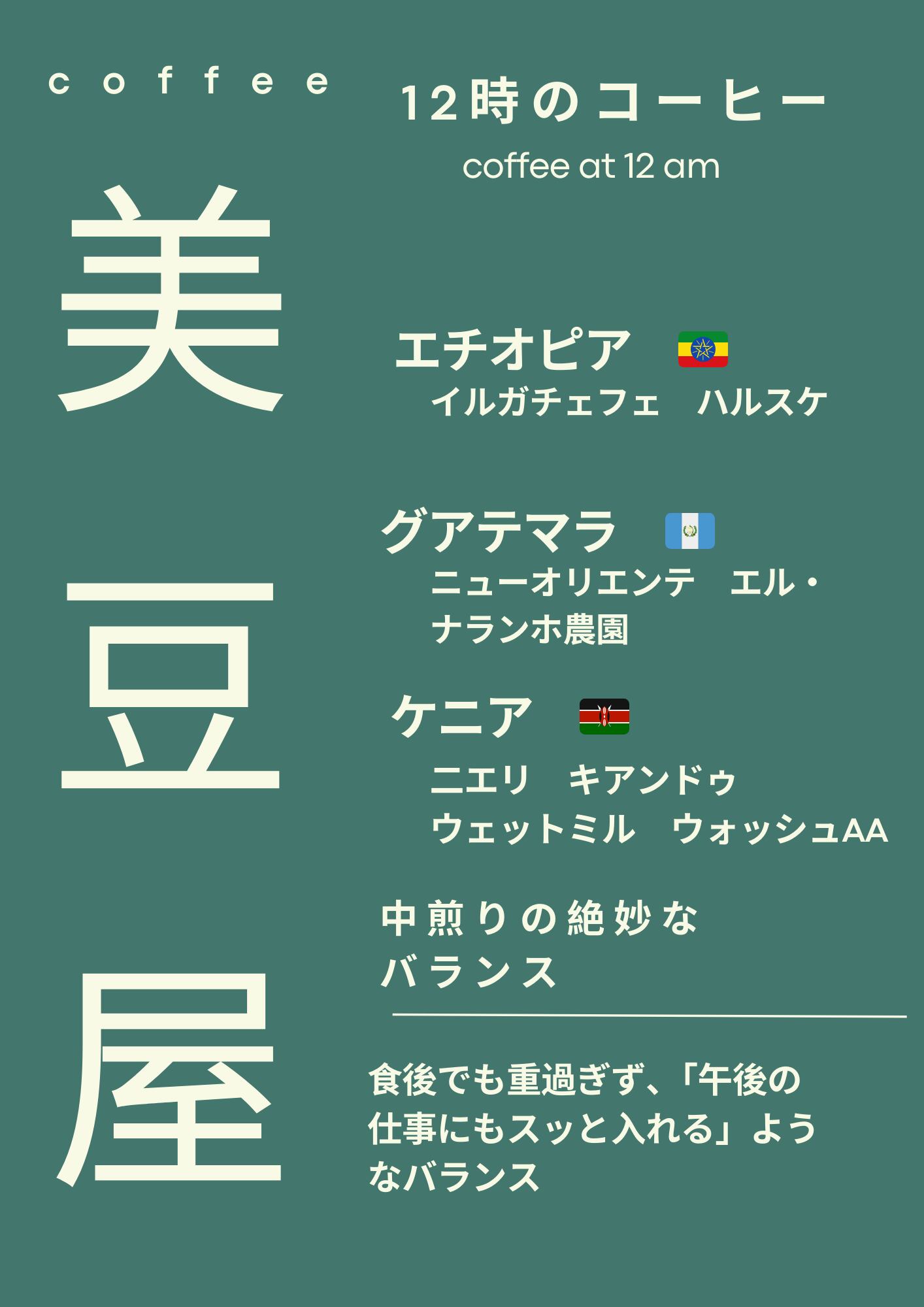 お昼時に飲むコーヒーは 食後でも重過ぎず、「午後の仕事にもスッと入れる」ようなバランスが人気です。中煎りに仕上げましたので軽やかで食後のリフレッシュに最適です。